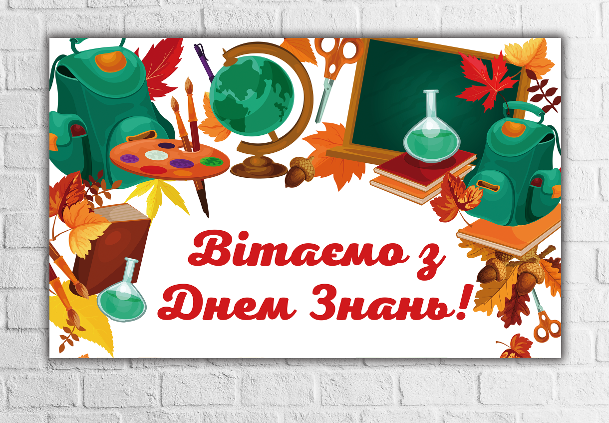 Плакат "З Днем знань (1 вересня), осінь, шкільне приладдя" 120х75 см на шкільну дошку