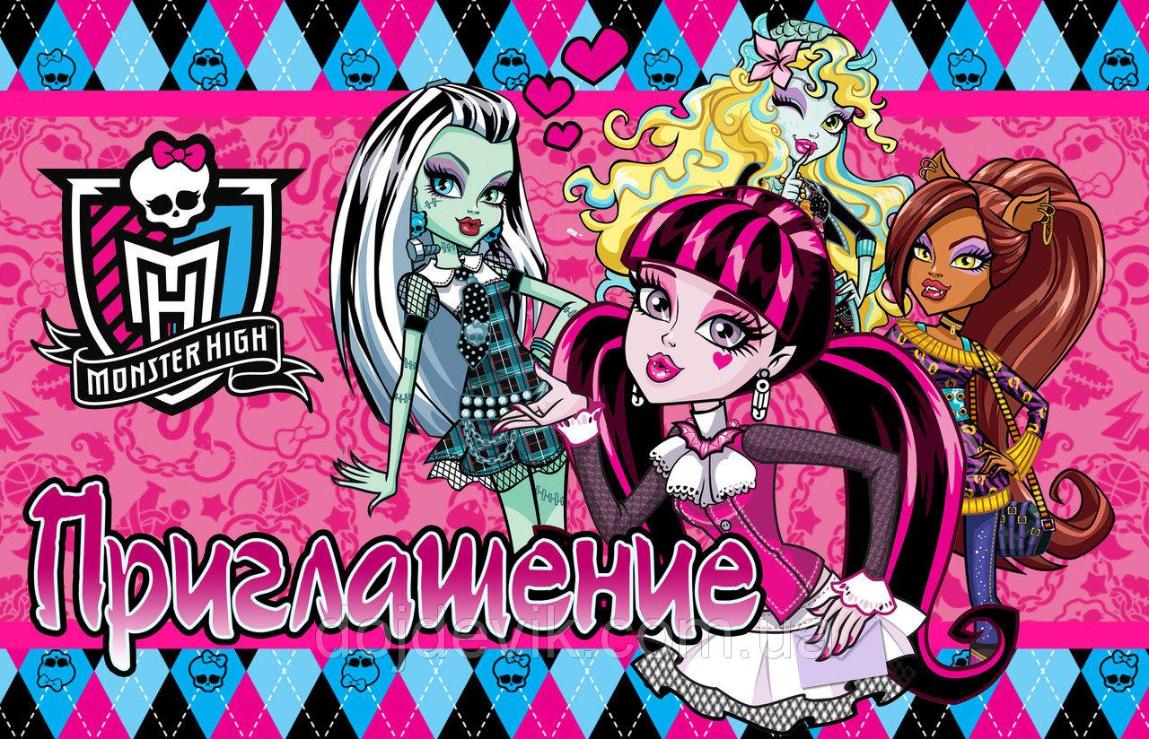 Дитячі запрошення "Монстер Хай" тематичні (20шт/уп, фотопапір) - Російською