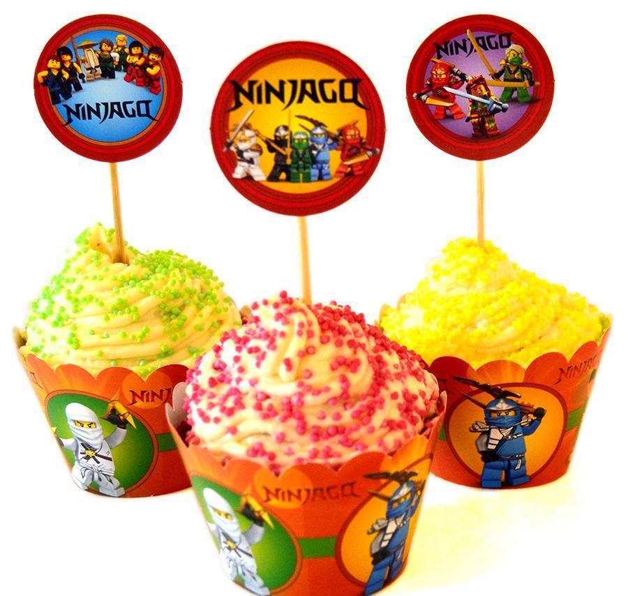 Набір для капкейків: топери і накладки на кошики (6шт/уп)-(Картон)- Ниндзяго, Прикрасу для столу, Помаранчевий